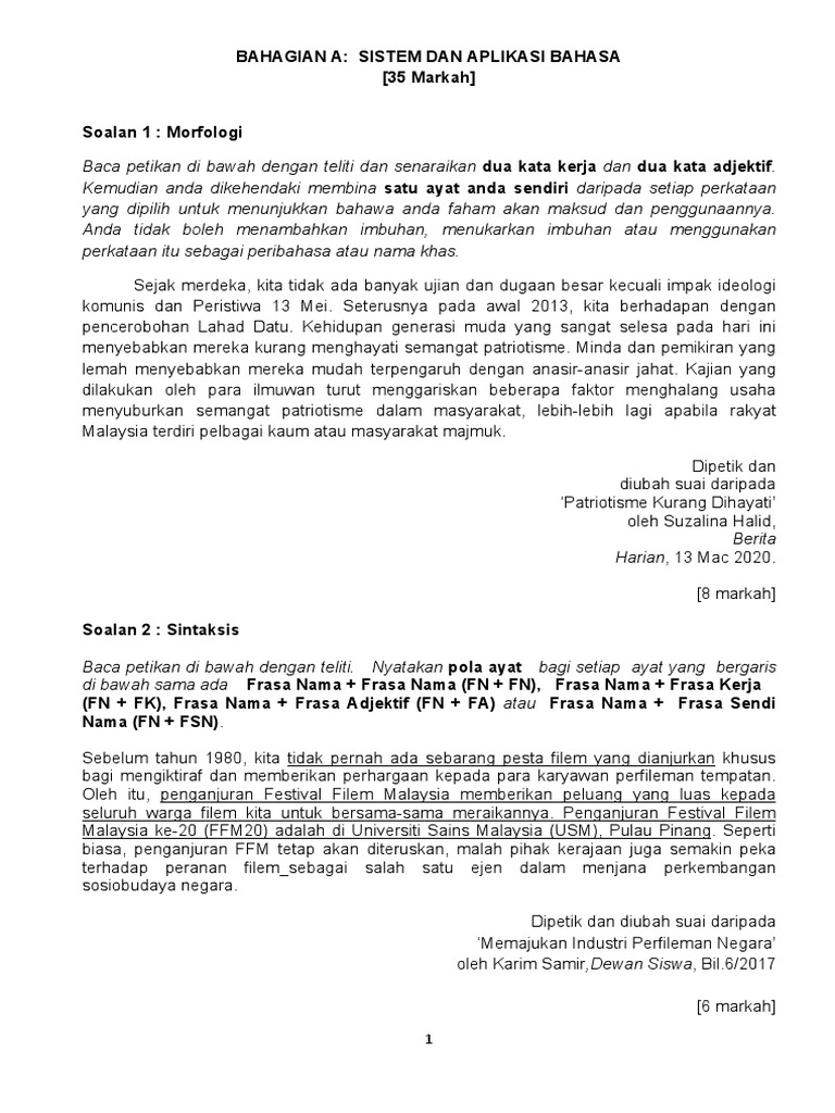 Bahagian A Bahasa Melayu Standard Pdf