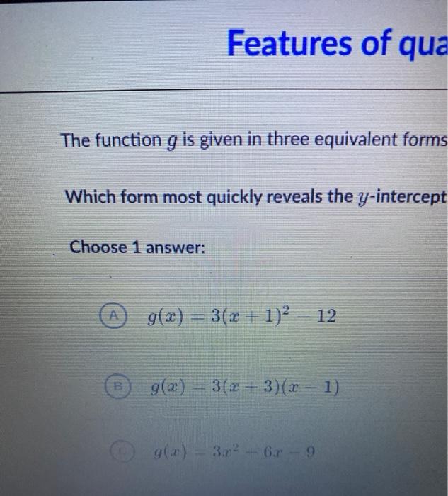 Solved The Function M Is Given In Three Equivalent Forms Which Form Most Quickly Reveals The Y Intercept Choose 1 Answer M C 2 6 X 2 M C 2x2 16r